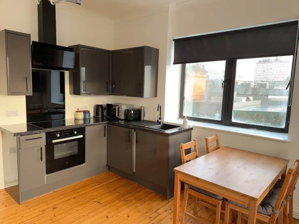 Two comfortable bedrooms made up of 3-double beds in total. The bright, open living space has city views and is perfect for relaxing after a day in the city on the large corner sofa. Fully equipped kitchen for home-cooked meals. Modern bathroom with bath and overhead shower with essential amenities for a comfortable stay.